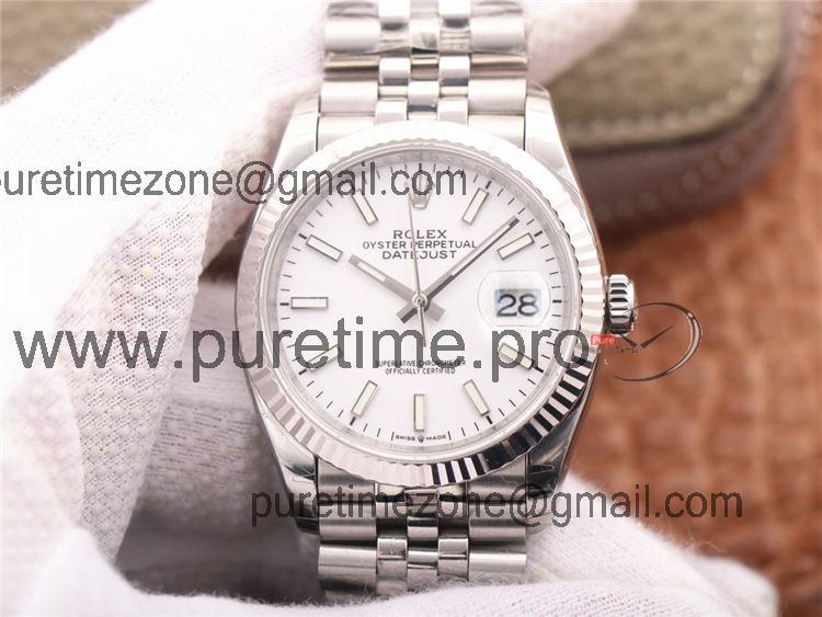 EWF Datejust 36 126234 A3235 Automatic Unisex Watch Fluted Bezel White Stick 904L SS Jubilee Bracelet Best Edition