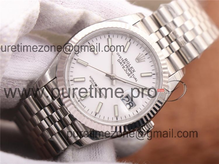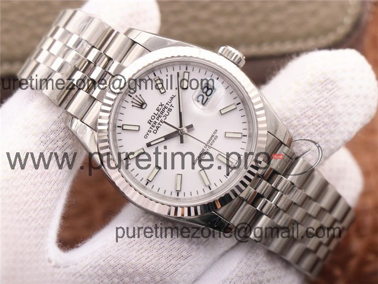 Home Rolex Datejust EWF Datejust 36 126234 A3235 Automatic Unisex Watch Fluted Bezel White Stick 904L SS Jubilee Bracelet Best Edition
