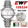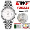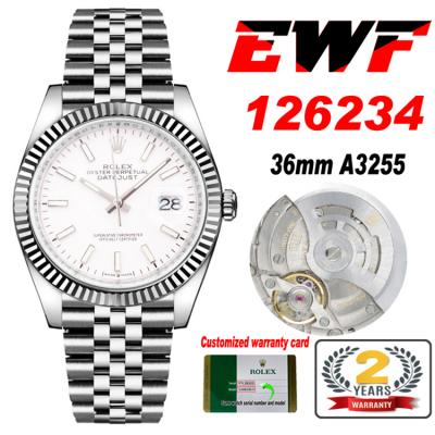 EWF Datejust 36 126234 A3235 Automatic Unisex Watch Fluted Bezel White Stick 904L SS Jubilee Bracelet Best Edition