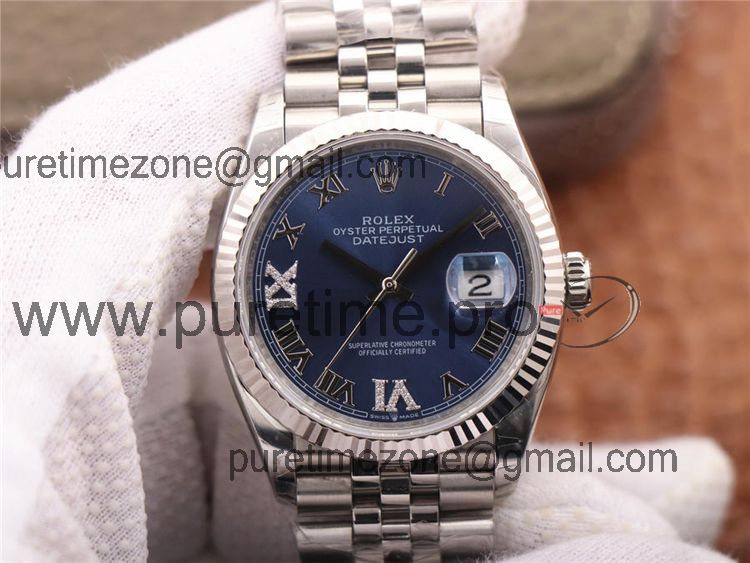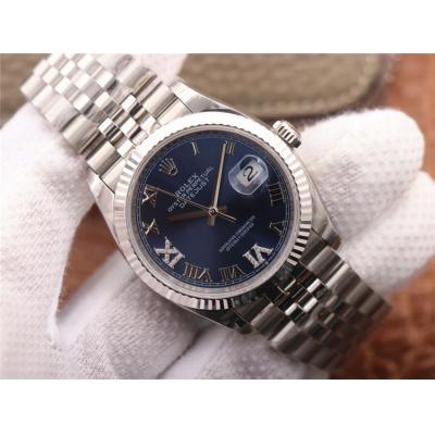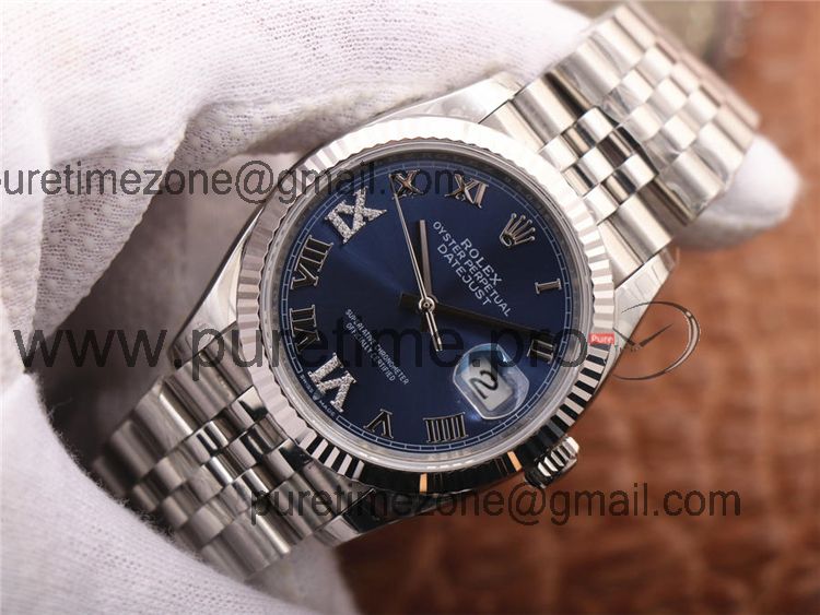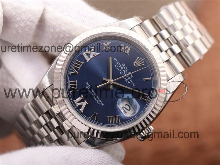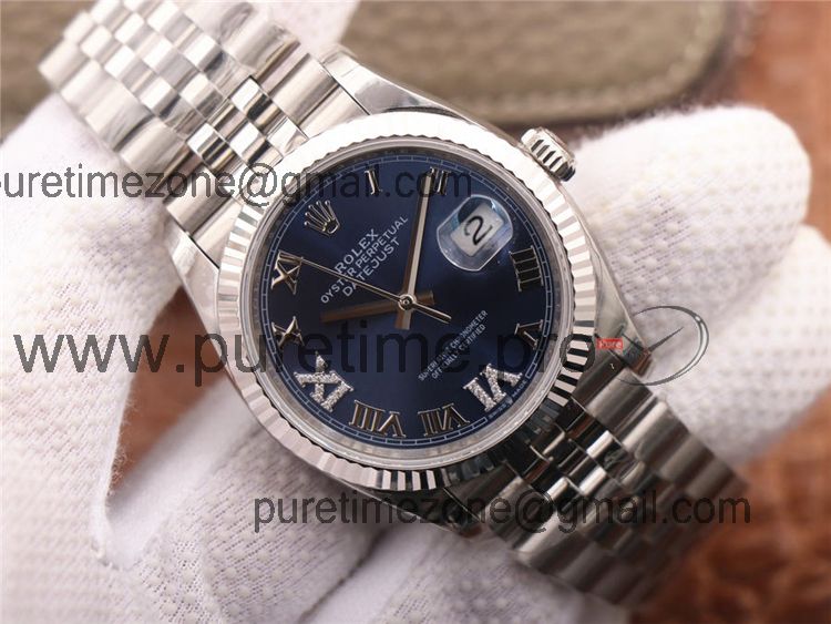 Home Rolex Datejust EWF Datejust 36 126234 A3235 Automatic Unisex Watch Fluted Blue Roman Diamonds 904L SS Jubilee Bracelet Best Edition