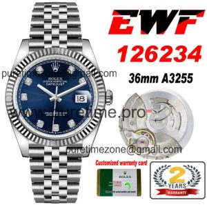 EWF Datejust 36 126234 A3235 Automatic Unisex Watch Fluted Bezel Blue Diamonds 904L SS Jubilee Bracelet Best Edition $540.00 $450.00
