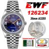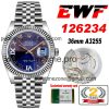 EWF Datejust 36 126234 A3235 Automatic Unisex Watch Fluted Blue Roman Diamonds 904L SS Jubilee Bracelet Best Edition