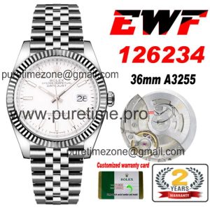 EWF Datejust 36 126234 A3235 Automatic Unisex Watch Fluted Bezel White Stick 904L SS Jubilee Bracelet Best Edition $540.00 $450.00