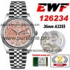 EWF Datejust 36 126234 A3235 Automatic Unisex Watch Fluted Veige LOGO Diamonds 904L SS Jubilee Bracelet Best Edition