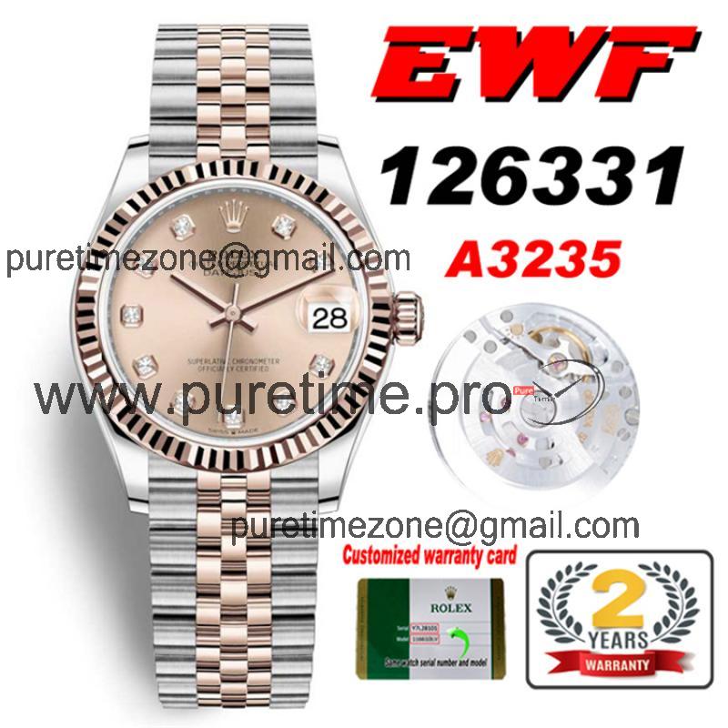 EWF Datejust 31 278273 A2688 Automatic Womens Watch Pink Roman VI Diamonds Dial SS Jubilee Bracelet Best Edition