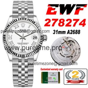 EWF Datejust 31 278273 A2688 Automatic Womens Watch Pink Roman Dial SS Jubilee Bracelet Best Edition