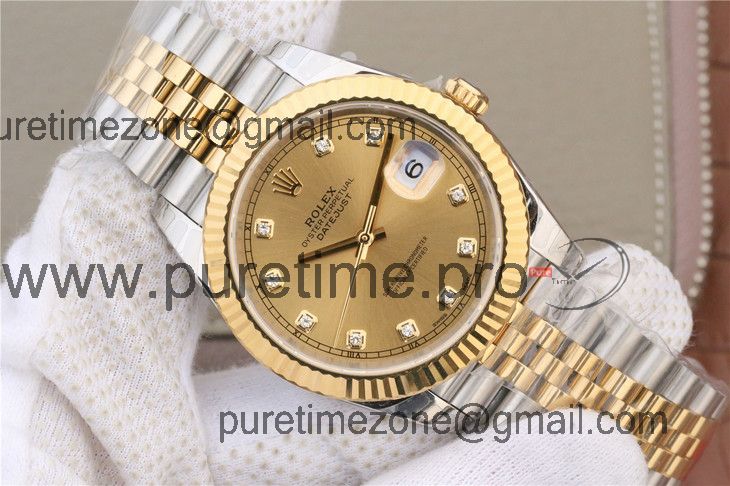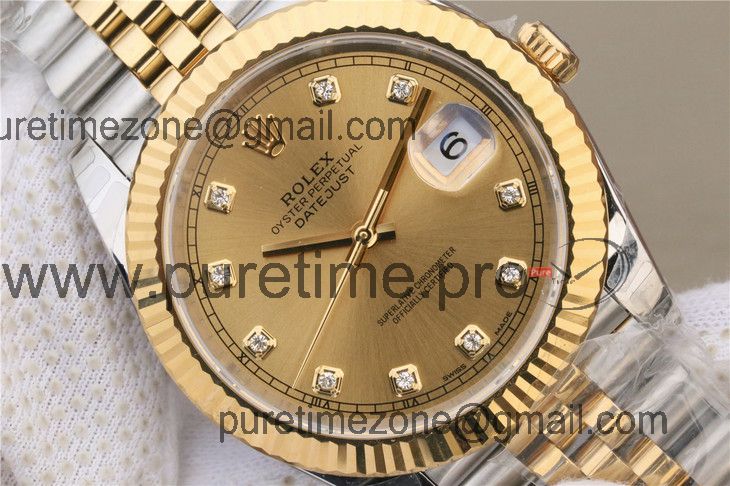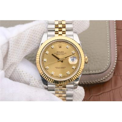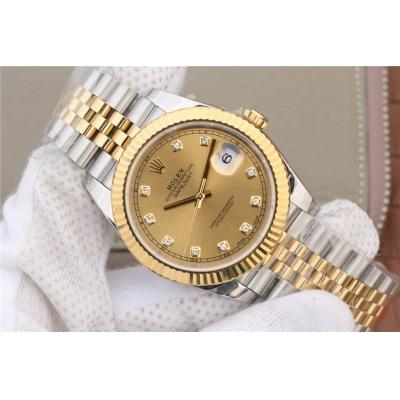 Home Rolex Datejust EWF Datejust 41 126331 A3235 Automatic Mens Watch Tow Tone YG Champagne Diamonds Dial SS Jubilee Bracelet Best Edition