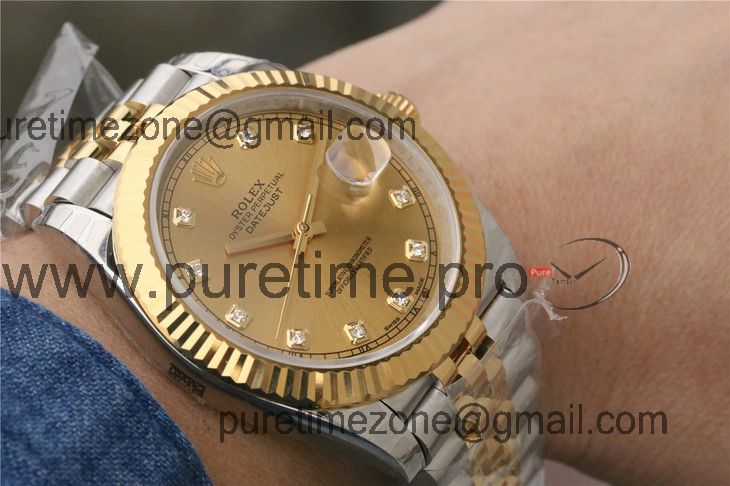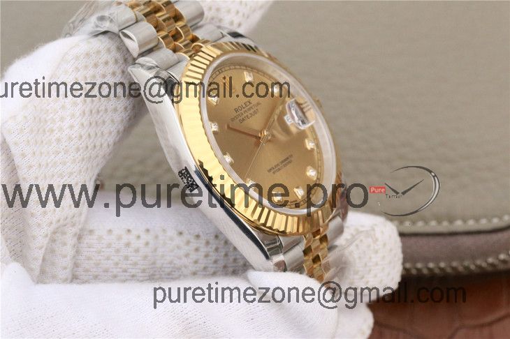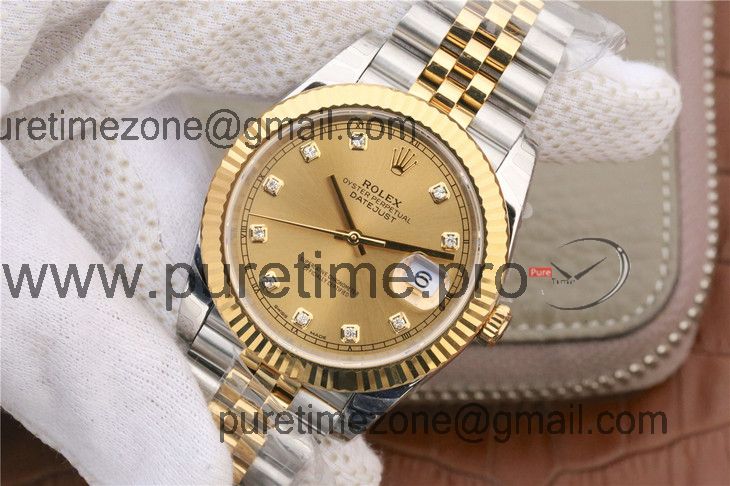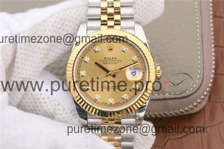 EWF Datejust 41 126331 A3235 Automatic Mens Watch Tow Tone YG Champagne Diamonds Dial SS Jubilee Bracelet Best Edition
