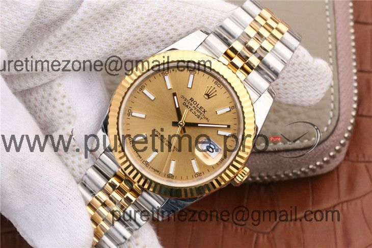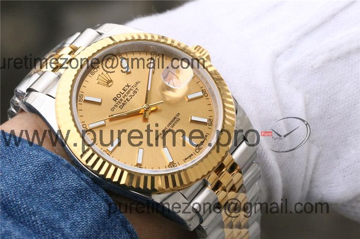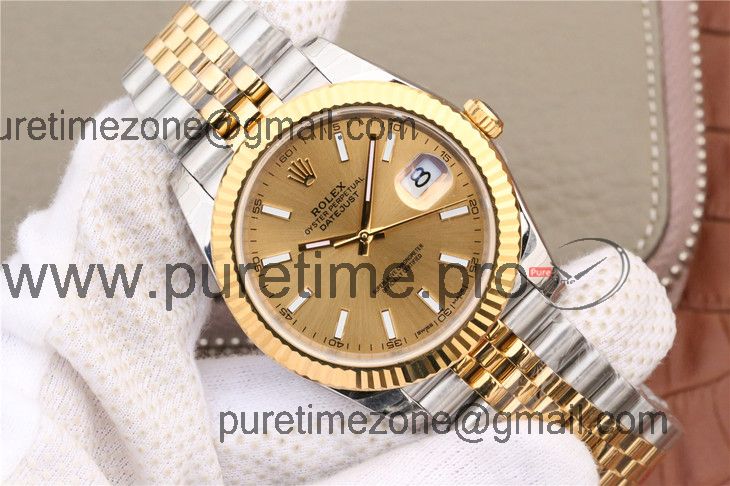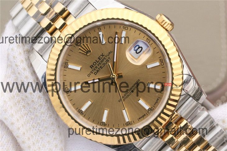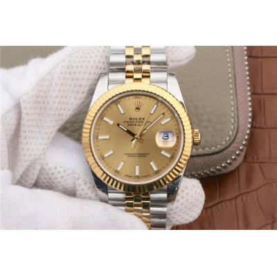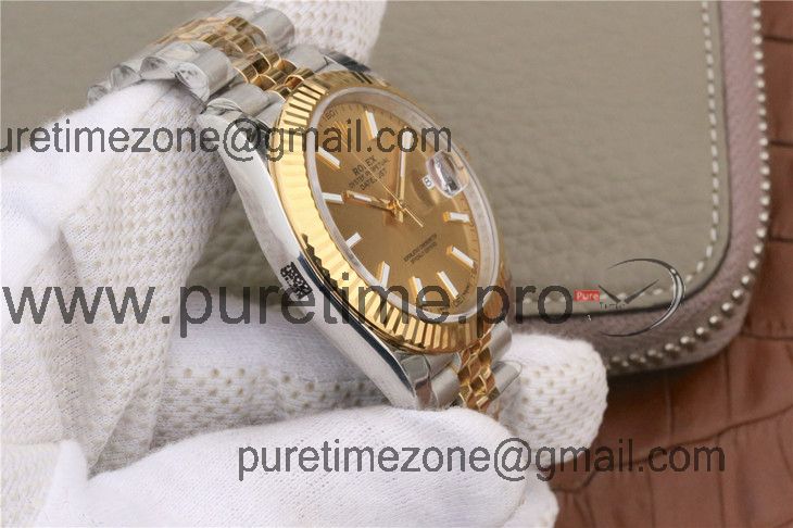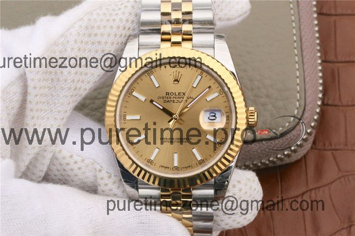EWF Datejust 41 126331 A3235 Automatic Mens Watch Tow Tone YG Champagne Stick Dial SS Jubilee Bracelet Best Edition