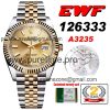 EWF Datejust 41 126331 A3235 Automatic Mens Watch Tow Tone RG Brown Stick Dial SS Jubilee Bracelet Best Edition