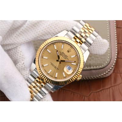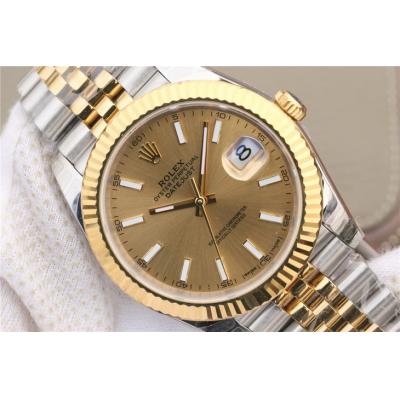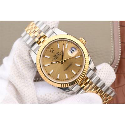 Home Rolex Datejust EWF Datejust 41 126331 A3235 Automatic Mens Watch Tow Tone YG Champagne Stick Dial SS Jubilee Bracelet Best Edition
