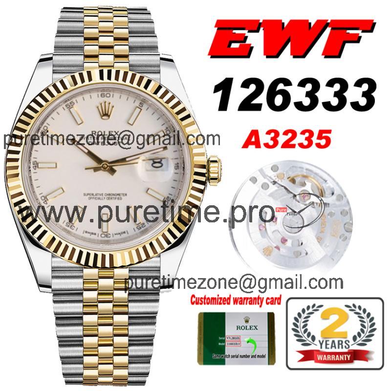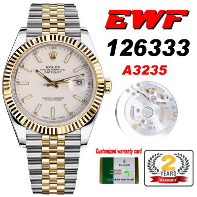 EWF Datejust 41 126331 A3235 Automatic Mens Watch Tow Tone YG Silver Stick Dial SS Jubilee Bracelet Best Edition
