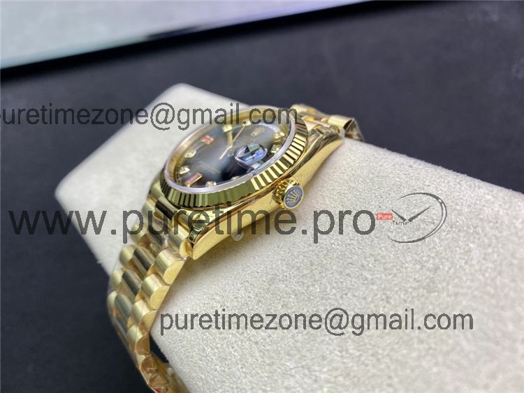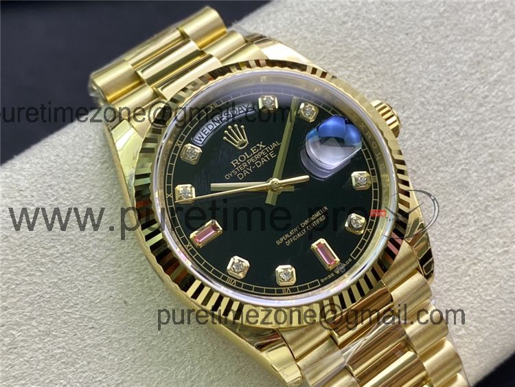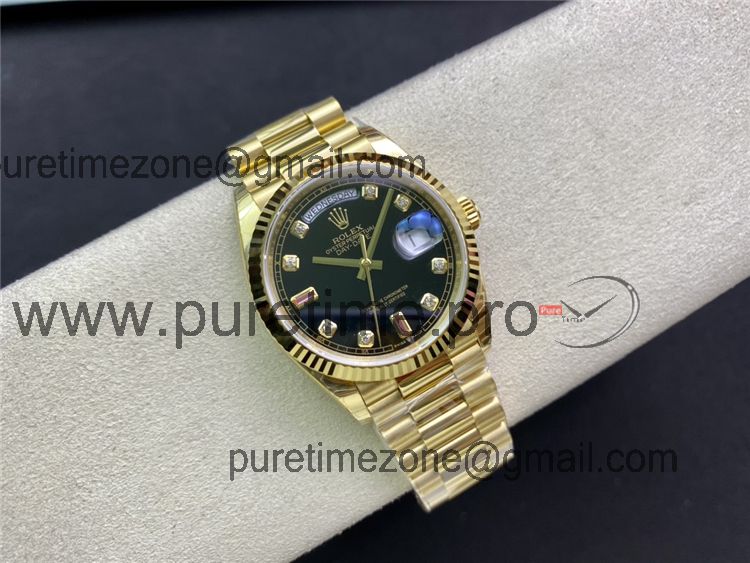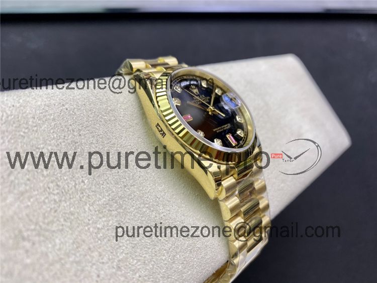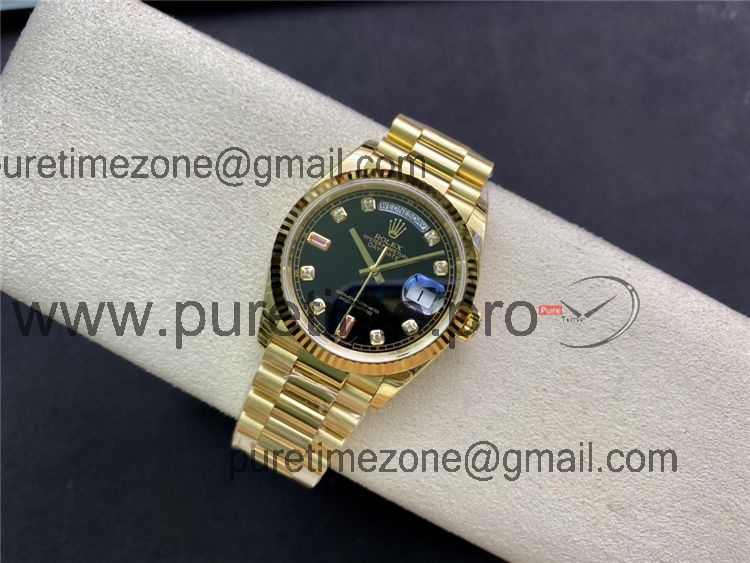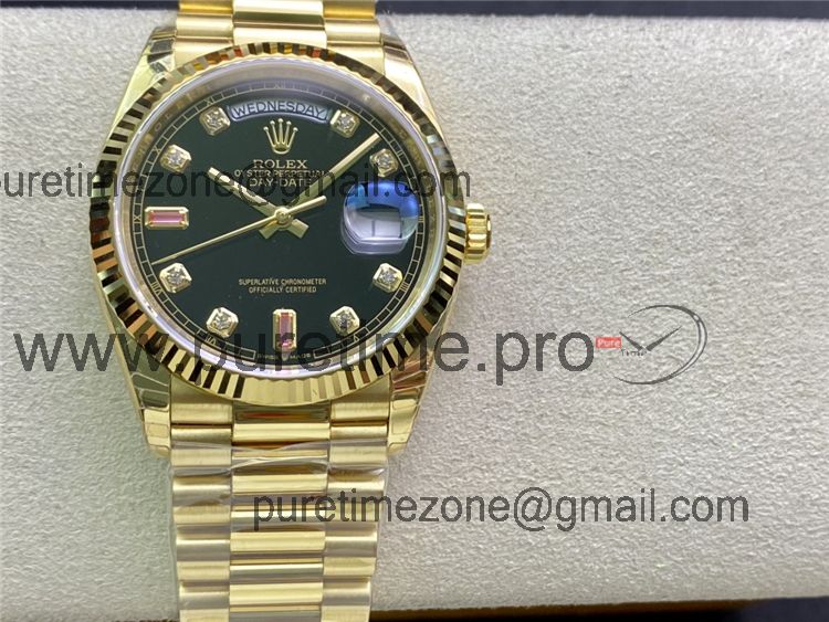 Home Rolex Day-Date EWF DayDate 36 128238 A2836 Automatic Mens Watch YG Fluted Bezel Black Diamond Dial President Bracelet Best Edition