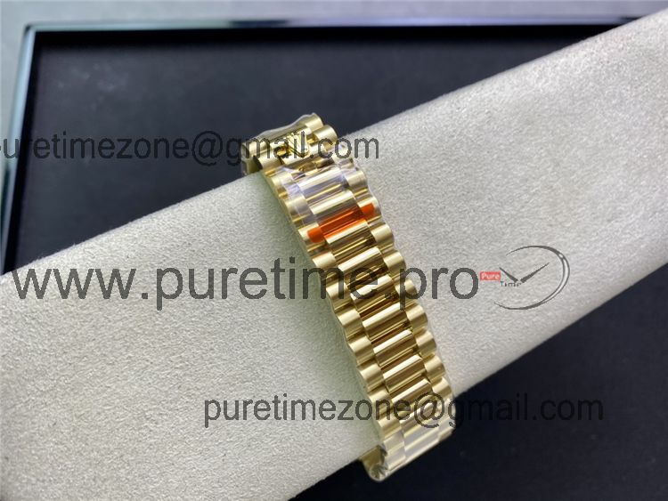 EWF DayDate 36 128238 A2836 Automatic Mens Watch YG Fluted Bezel Gold Stick Dial President Bracelet Best Edition $552.00 $460.00