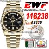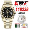 EWF DayDate 36 128238 A2836 Automatic Mens Watch YG Fluted Bezel Black Diamond Dial President Bracelet Best Edition