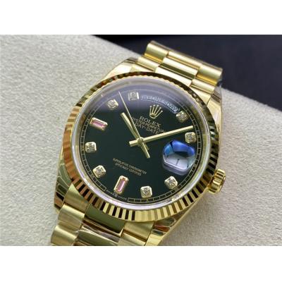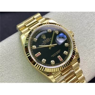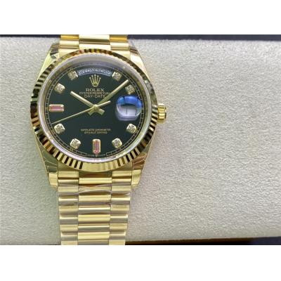 Home Rolex Day-Date EWF DayDate 36 128238 A2836 Automatic Mens Watch YG Fluted Bezel Black Diamond Dial President Bracelet Best Edition