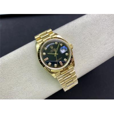 Day-Date 118138 36MM A2836 Automatic Mens Watch Best Edition TRF Yellow Gold Gold DialGreen Leather
