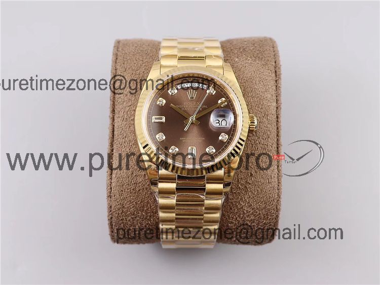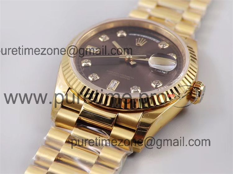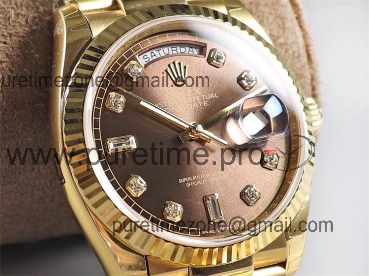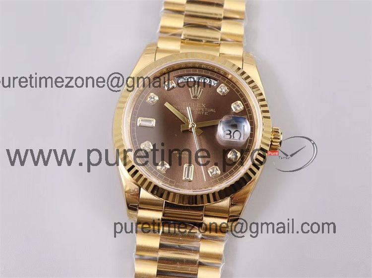 Home Rolex Day-Date EWF DayDate 36 128238 A2836 Automatic Mens Watch YG Fluted Bezel Brown Diamond Dial President Bracelet Best Edition