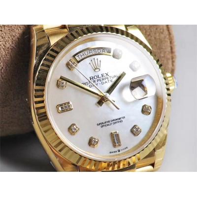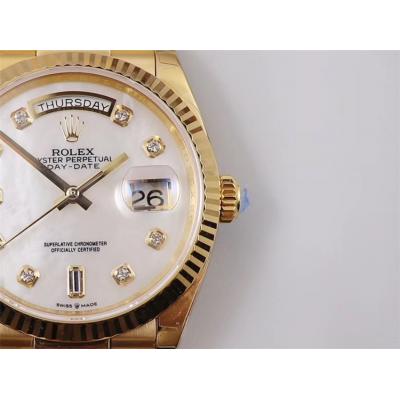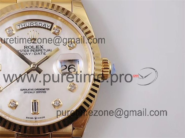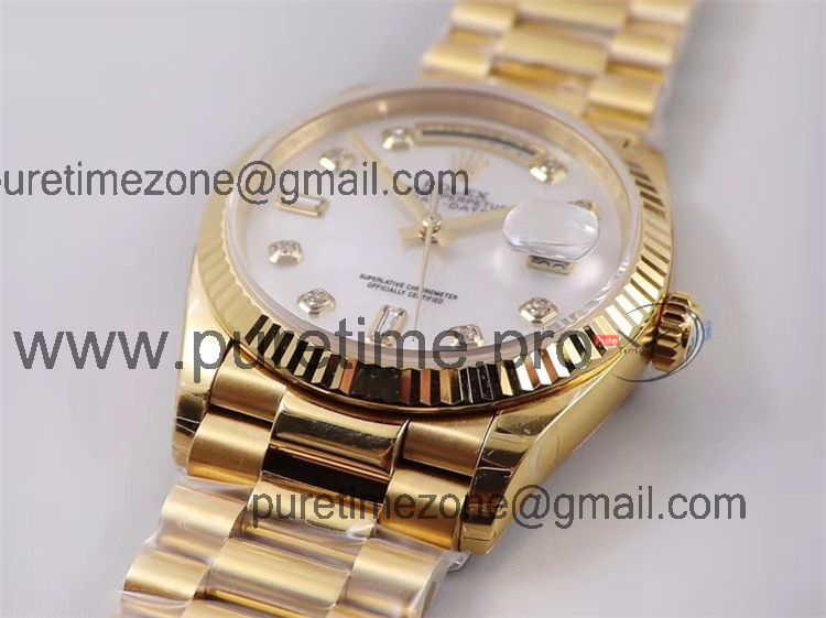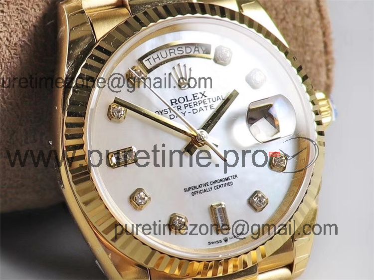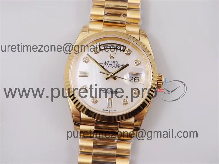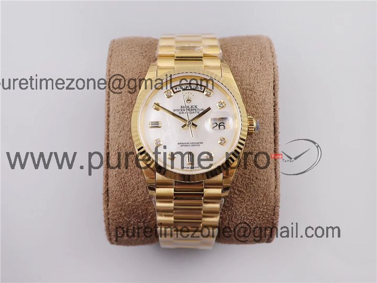Home Rolex Day-Date EWF DayDate 36 128238 A2836 Automatic Mens Watch YG Fluted Bezel MOP Diamond Dial President Bracelet Best Edition