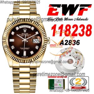 EWF DayDate 36 128238 A2836 Automatic Mens Watch YG Fluted Bezel Brown Diamond Dial President Bracelet Best Edition $552.00 $460.00