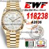 EWF DayDate 36 128238 A2836 Automatic Mens Watch YG Fluted Bezel MOP Diamond Dial President Bracelet Best Edition