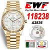 EWF DayDate 36 128348 A2836 Automatic Mens Watch YG Diamond Bezel Gold Dial President Bracelet Best Edition