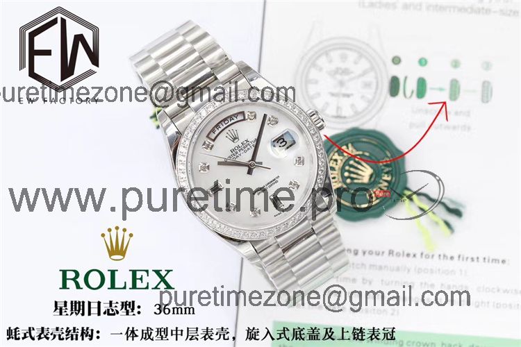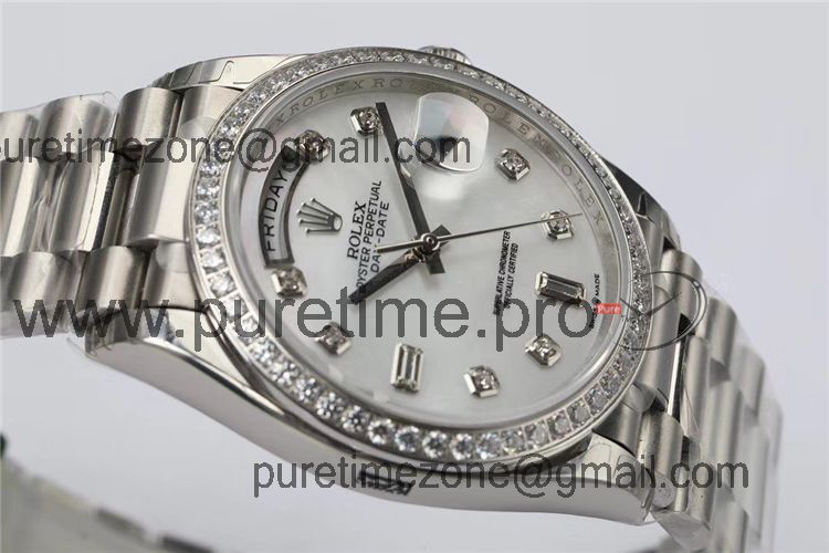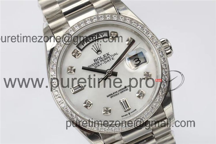 Home Rolex Day-Date EWF DayDate 36 128349 A2836 Automatic Mens Watch Diamond Bezel MOP Dial SS President Bracelet Best Edition