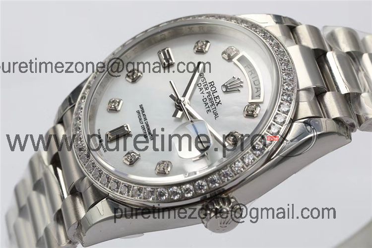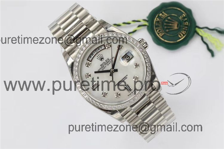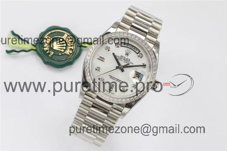 EWF DayDate 36 128348 A2836 Automatic Mens Watch RG Diamond Bezel MOP Dial SS President Bracelet Best Edition