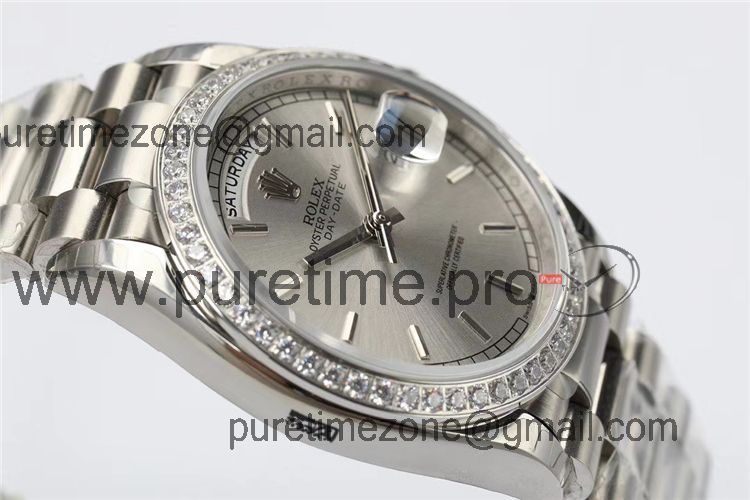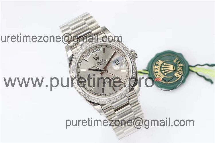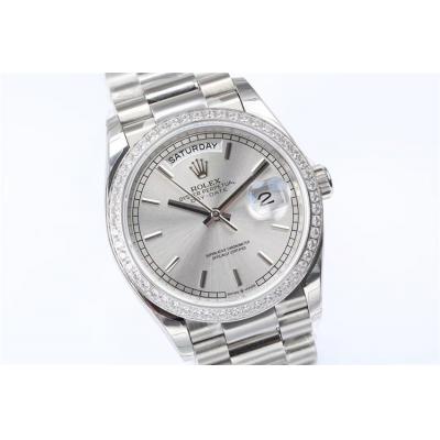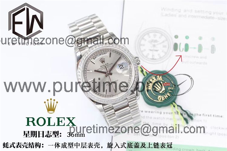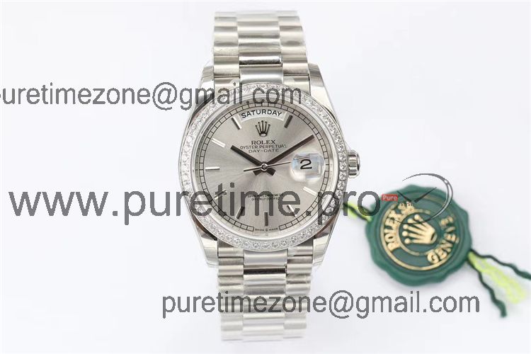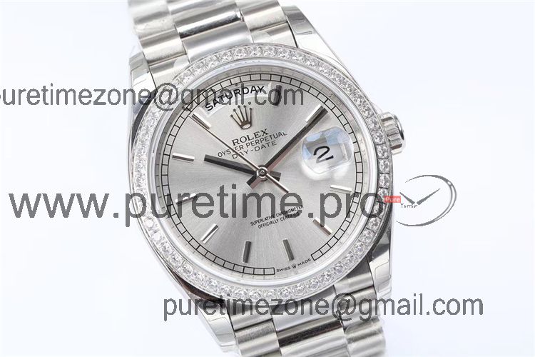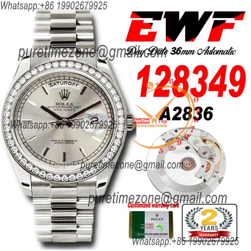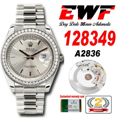 Home Rolex Day-Date EWF DayDate 36 128349 A2836 Automatic Mens Watch Diamond Bezel Silver Dial SS President Bracelet Best Edition