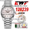 EWF DayDate 36 128349 A2836 Automatic Mens Watch Fluted Bezel Silver Diamonds Dial President Bracelet Best Edition