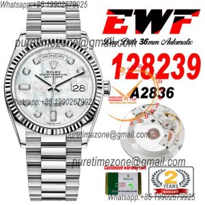 EWF DayDate 36 128348 A2836 Automatic Mens Watch RG Diamond Bezel MOP Dial SS President Bracelet Best Edition