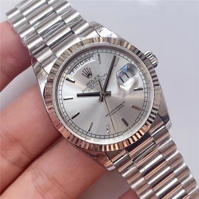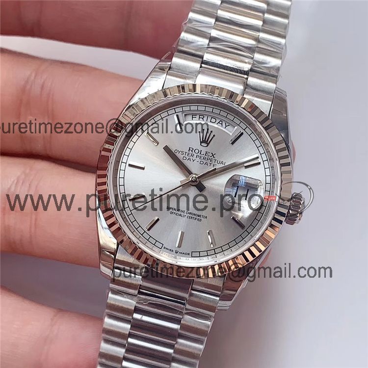 Home Rolex Day-Date EWF DayDate 36 128349 A2836 Automatic Mens Watch Fluted Bezel Silver Stick Dial President Bracelet Best Edition