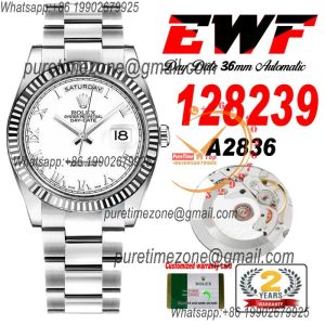 Be the first to review “EWF DayDate 36 128349 A2836 Automatic Mens Watch Fluted Bezel Silver Stick Dial President Bracelet Best Edition” Cancel reply
