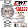 EWF DayDate 36 128349 A2836 Automatic Mens Watch Fluted Bezel Silver Stick Dial President Bracelet Best Edition