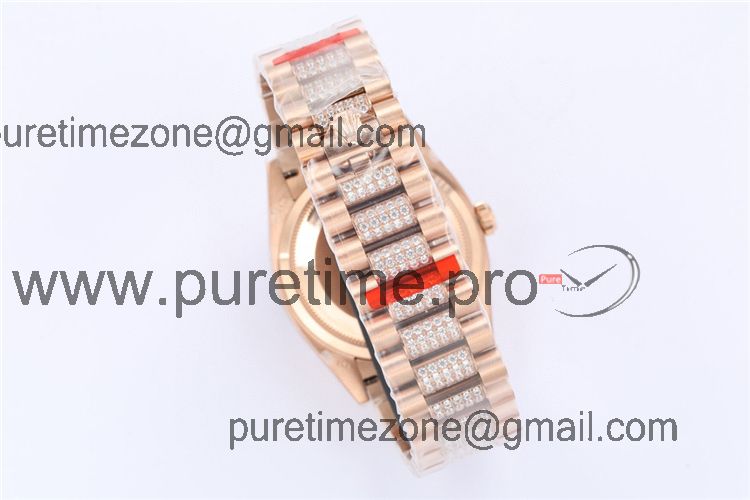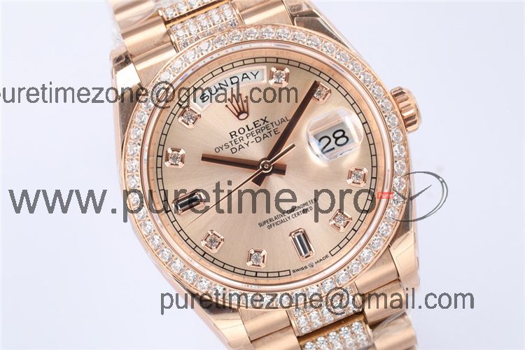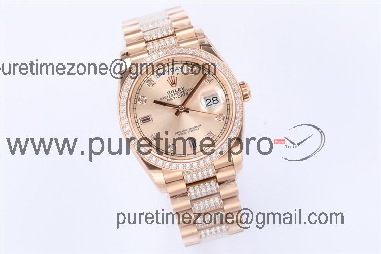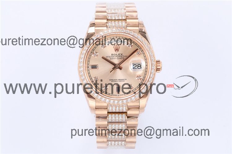 Home Rolex Day-Date EWF DayDate 36 128349 A2836 Automatic Mens Watch RG Champagne Dial Diamond Bezel And President Bracelet Best Edition