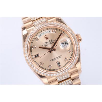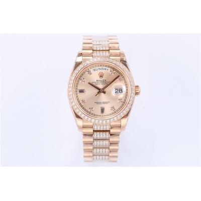 Home Rolex Day-Date EWF DayDate 36 128349 A2836 Automatic Mens Watch RG Champagne Dial Diamond Bezel And President Bracelet Best Edition