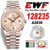 EWF DayDate 36 128349 A2836 Automatic Mens Watch RG Champagne Dial Diamond Bezel And President Bracelet Best Edition