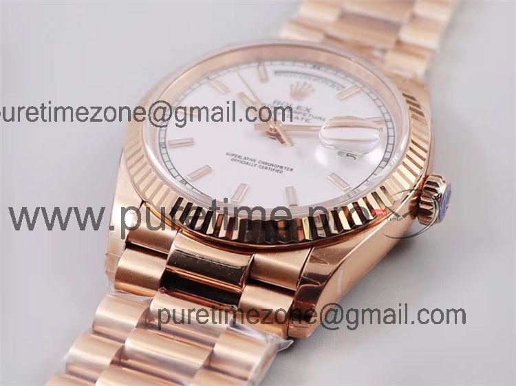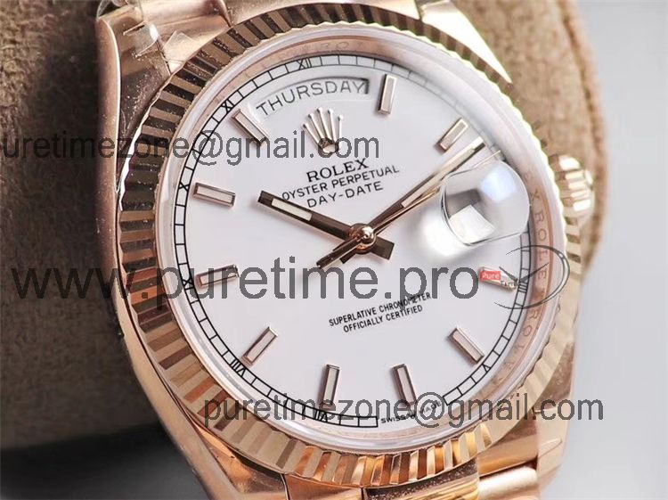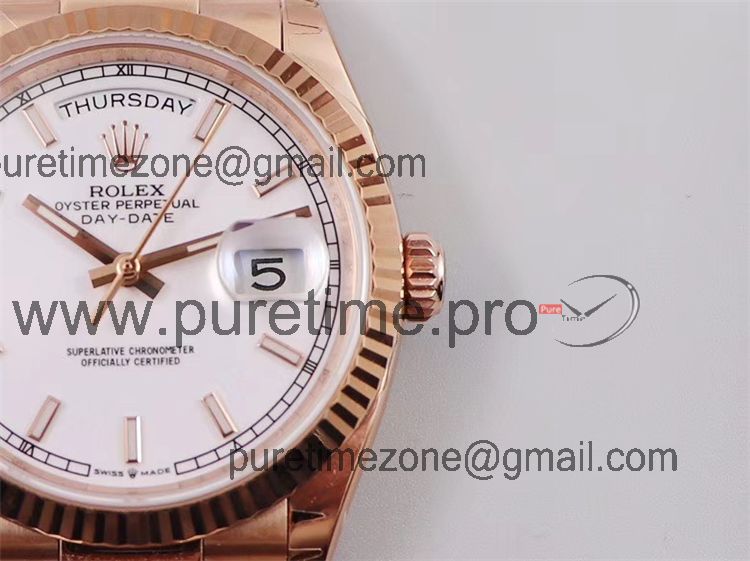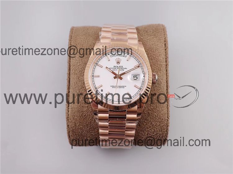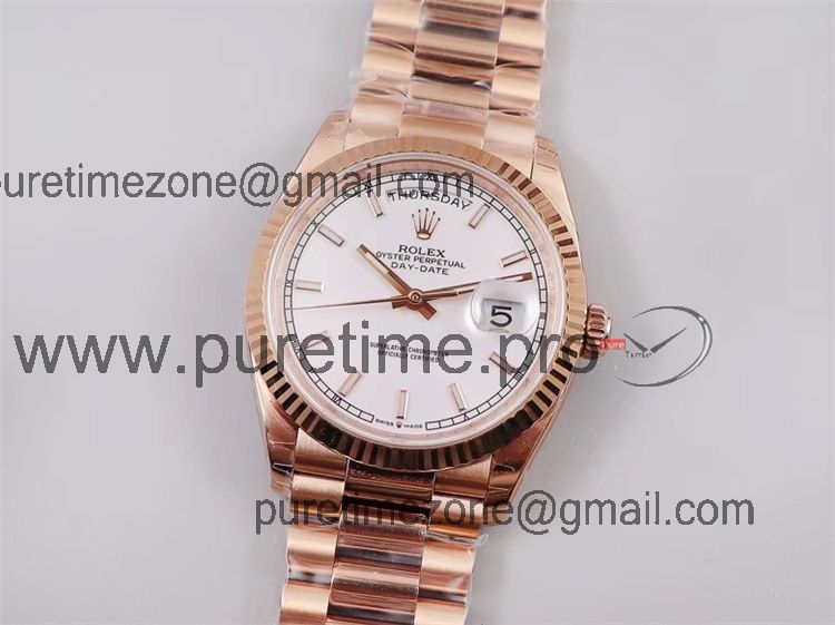 Home Rolex Day-Date EWF DayDate 36 128349 A2836 Automatic Mens Watch RG Fluted Bezel Silver Stick Dial President Bracelet Best Edition