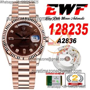 EWF DayDate 36 128348 A2836 Automatic Mens Watch RG Diamond Bezel Brown Dial President Bracelet Best Edition