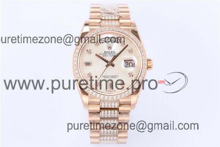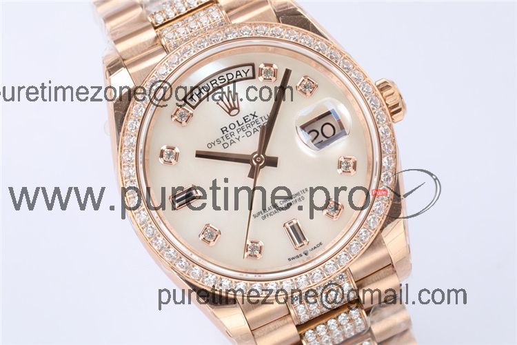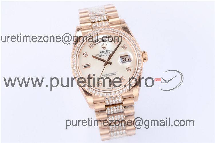 Home Rolex Day-Date EWF DayDate 36 128349 A2836 Automatic Mens Watch RG MOP Dial Diamond Bezel And President Bracelet Best Edition
