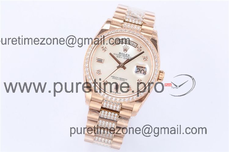 EWF DayDate 36 128349 A2836 Automatic Mens Watch RG Champagne Dial Diamond Bezel And President Bracelet Best Edition $684.00 $570.00