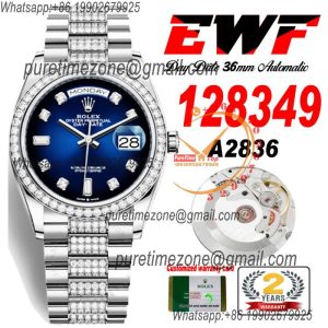 EWF DayDate 36 128349 A2836 Automatic Mens Watch Blue Dial Diamond Bezel And President Bracelet Best Edition $660.00 $550.00