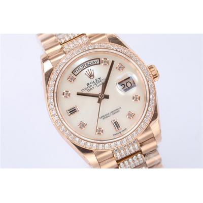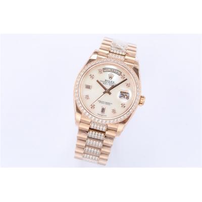 Home Rolex Day-Date EWF DayDate 36 128349 A2836 Automatic Mens Watch RG MOP Dial Diamond Bezel And President Bracelet Best Edition