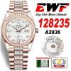 EWF DayDate 36 128349 A2836 Automatic Mens Watch RG MOP Dial Diamond Bezel And President Bracelet Best Edition