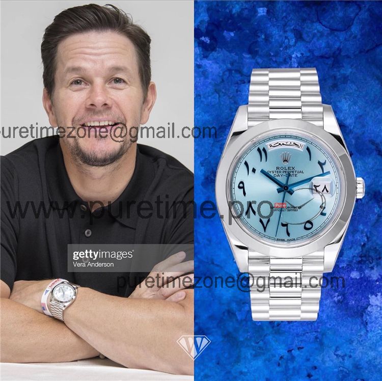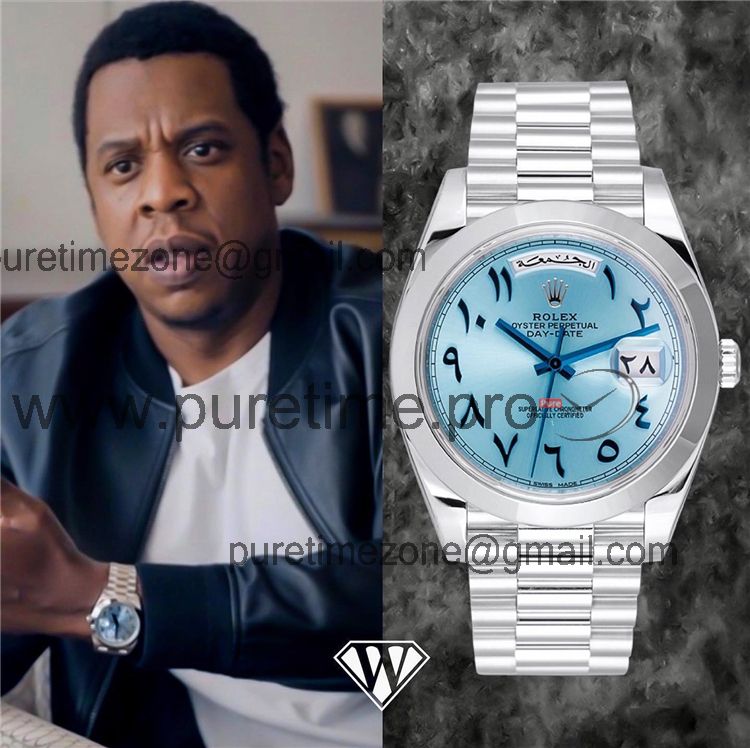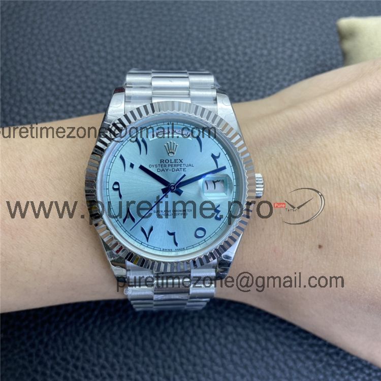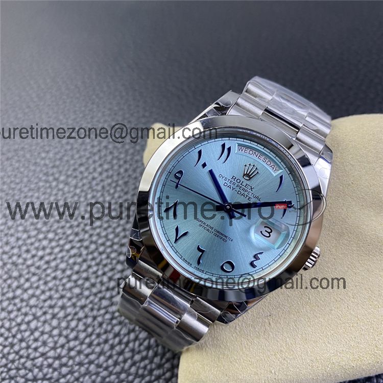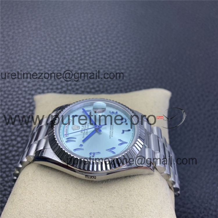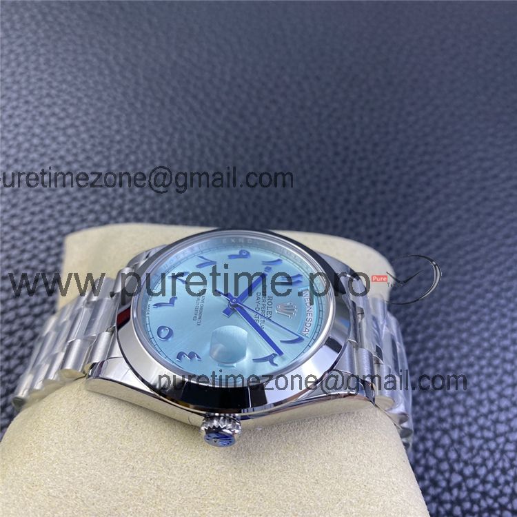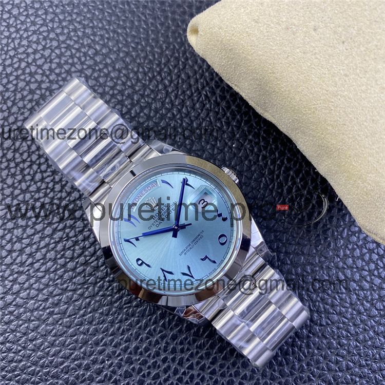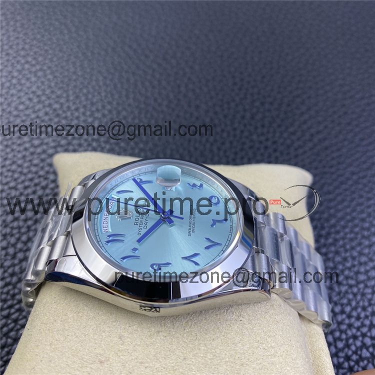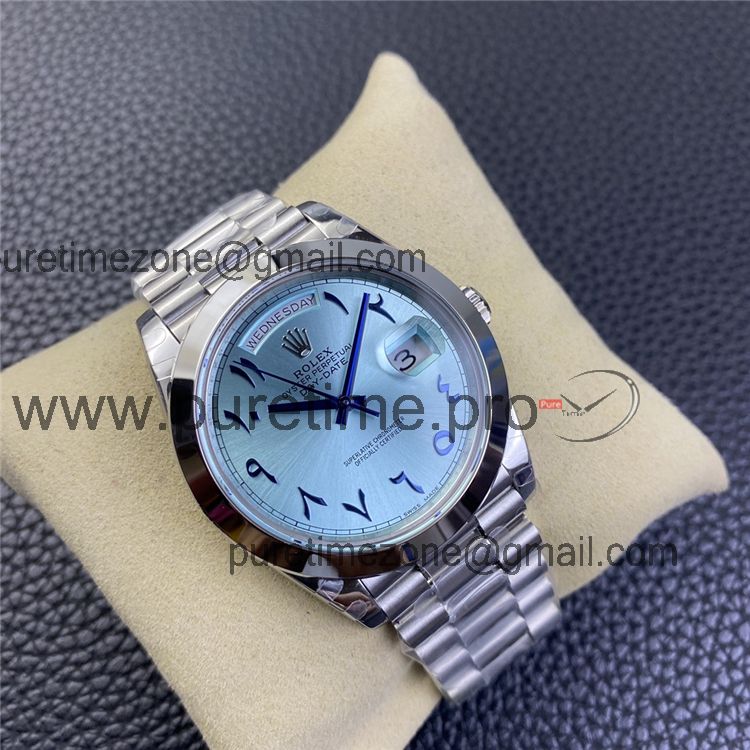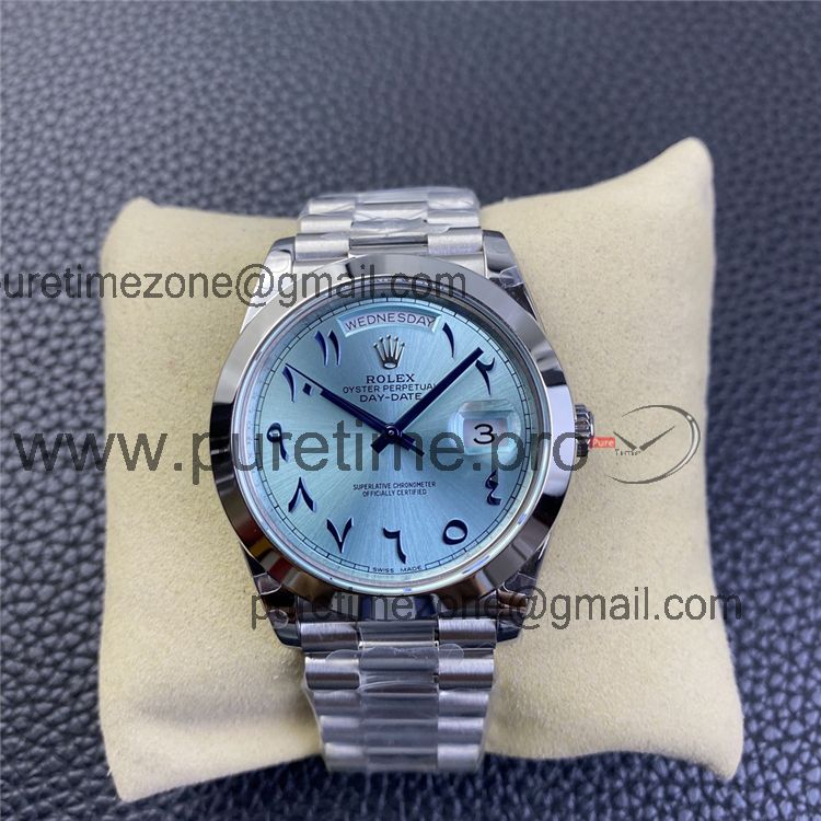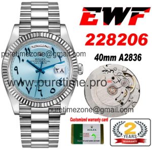 Home Rolex Day-Date EWF DayDate 40 228206 Automatic Mens Watch Polished Bezel Ice Blue Dial Arabic Script President Bracelet Best Edition