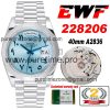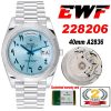 EWF DayDate 40 228206 Automatic Mens Watch Polished Bezel Ice Blue Dial Arabic Script President Bracelet Best Edition