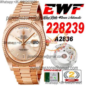 EWF DayDate 40 228235 A2836 Automatic Mens Watch RG Brown Diamond Dial President Bracelet Best Edition