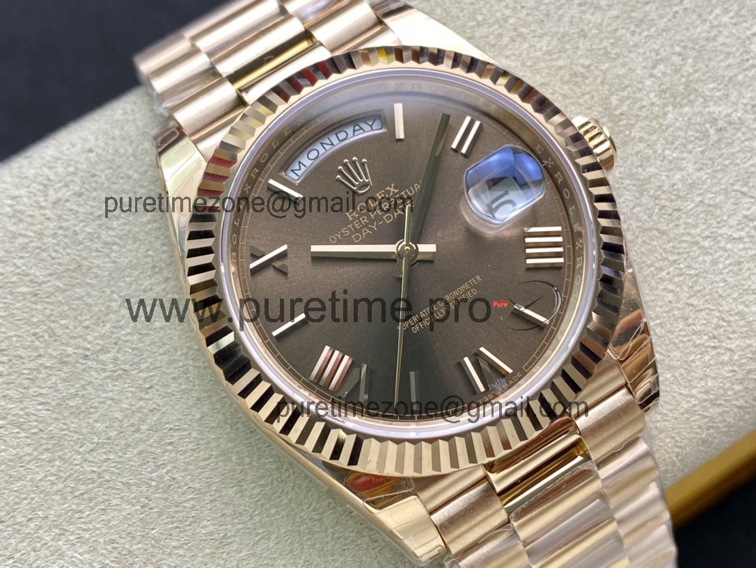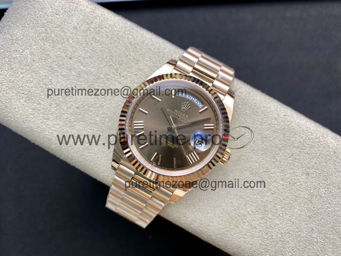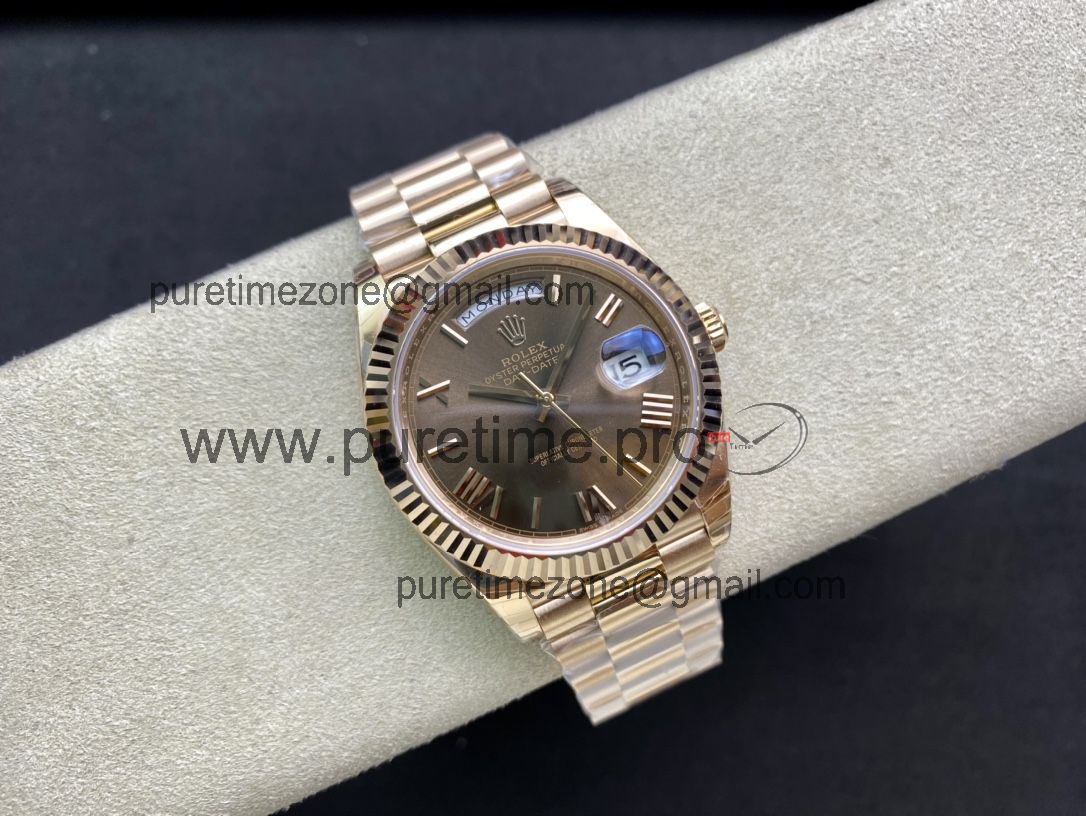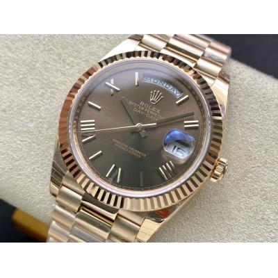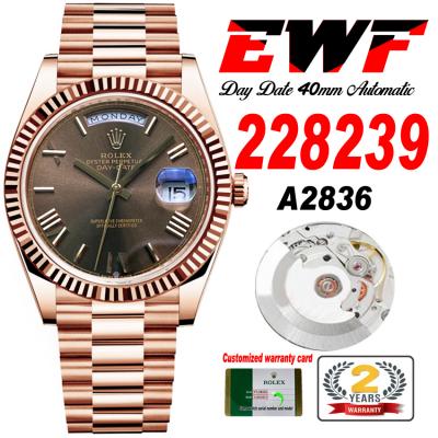 EWF DayDate 40 228235 A2836 Automatic Mens Watch RG Brown Roman Dial President Bracelet Best Edition