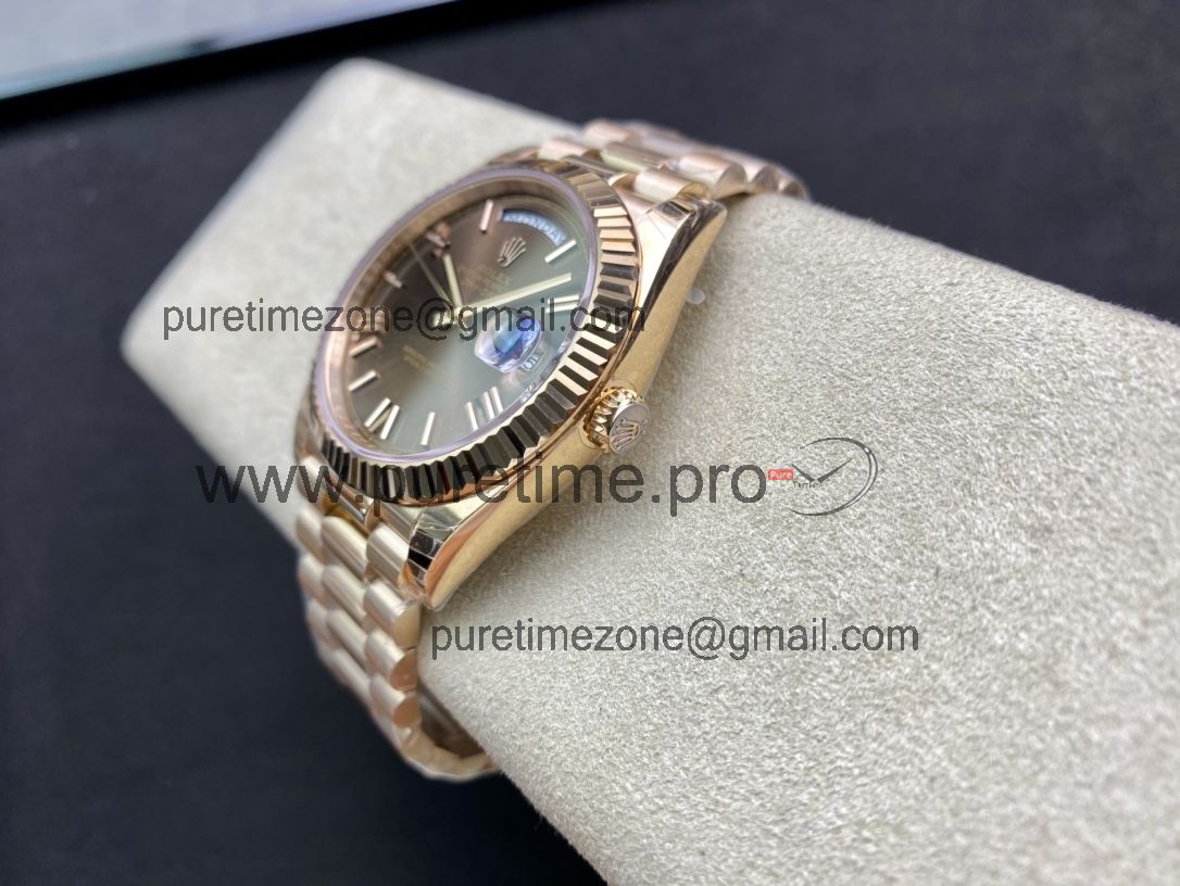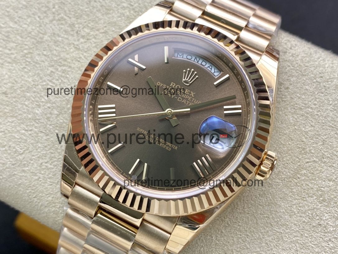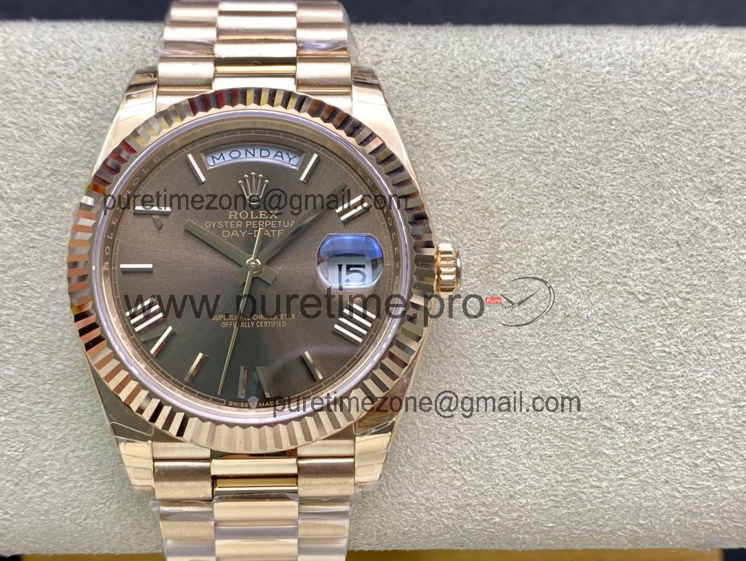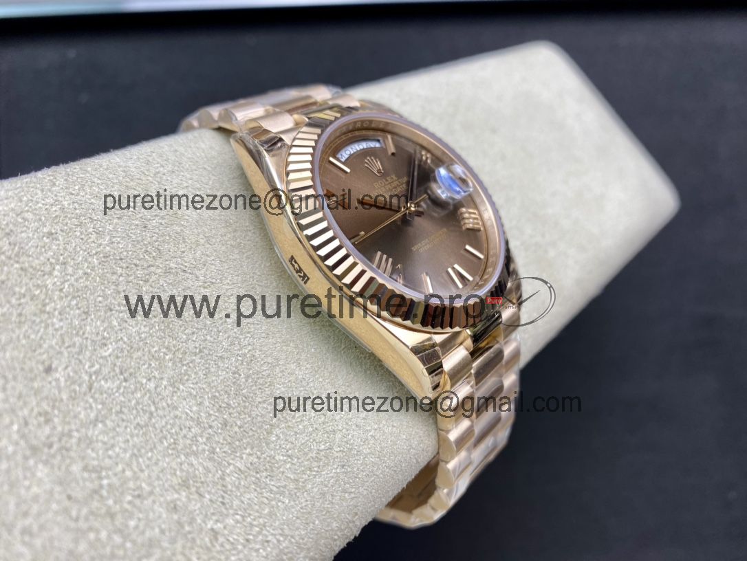 EWF DayDate 40 228235 A2836 Automatic Mens Watch RG Brown Roman Dial President Bracelet Best Edition