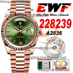 Be the first to review “EWF DayDate 40 228235 A2836 Automatic Mens Watch RG Brown Roman Dial President Bracelet Best Edition” Cancel reply